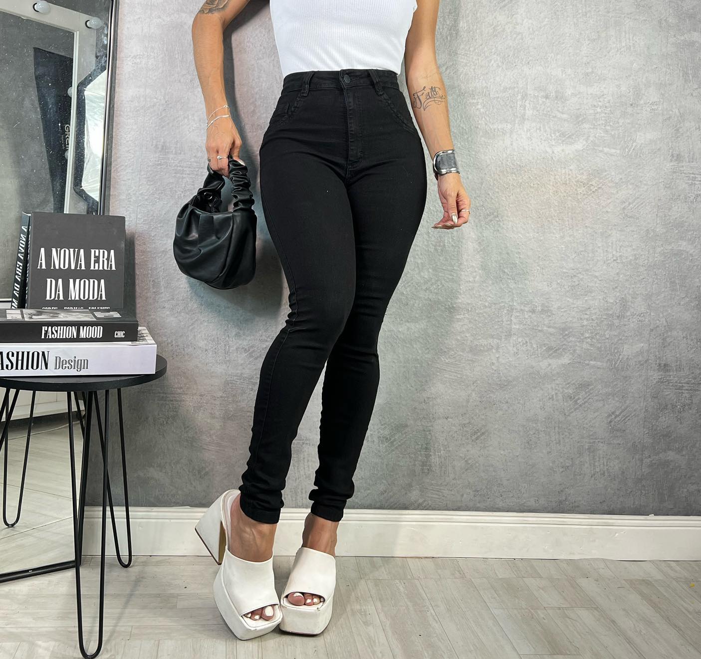 Aquela calça jeans perfeita que não pode faltar no seu guarda-roupa. Super alta e com bastante elastano, proporciona um ajuste perfeito e da flexibilidade ao seus movimentos. Ideal para compor diversos looks, desde o trabalho ao happy hour.